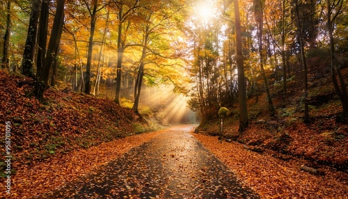 © WachiraKL, Obraz premium Autumn Forest Path