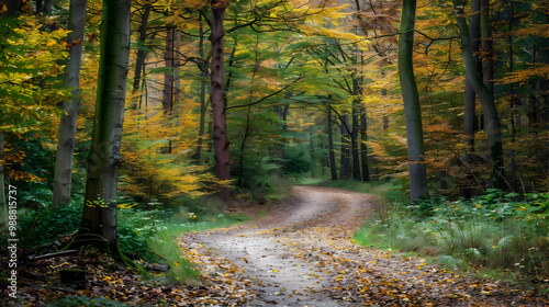 Fototapeta premium Autumn Forest Path: A Winding Trail Through Golden Leaves