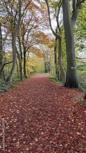 © BABEKU, Naklejka premium Autumn forest path covered in fallen leaves
