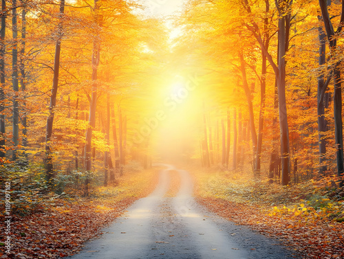 © GontaGanti, Obraz premium Autumn Forest Path Illustration