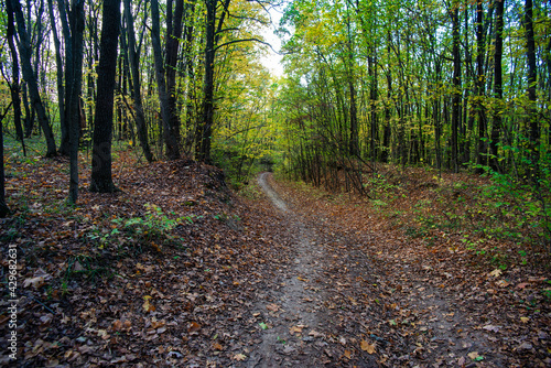 © Андрей Яровский, Obraz premium autumn forest path in the morning