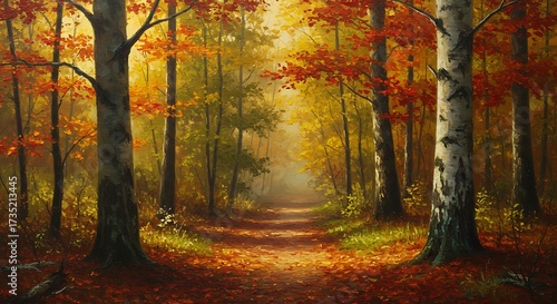 © faturlp24, Obraz premium Autumn Forest Path: Serene Landscape with Colorful Foliage