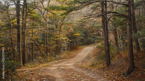 Naklejka premium Autumn Forest Path Through Golden Trees