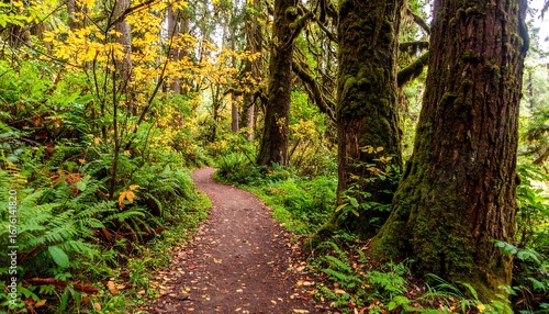 © Abbasya, Obraz premium Autumn forest path winding through vibrant foliage