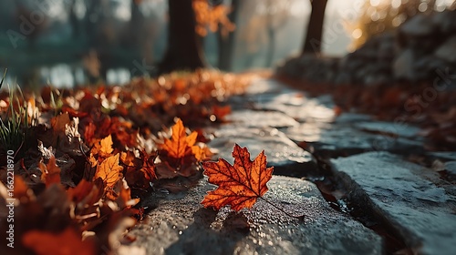 Fototapeta premium Autumn forest path with glowing sunlight high resolution Wallpaper