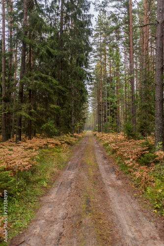 Fototapeta premium Autumn Forest Path with Yellow and Green Foliage in Northern Europe