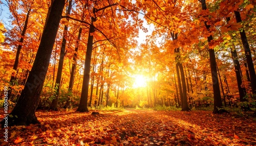 © Bibi, Fototapeta premium Autumn forest pathway