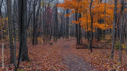 Fototapeta premium Autumn Forest Pathway Surrounded by Vibrant Colorful Foliage