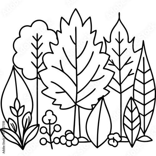 Obraz premium autumn forest plants outline coloring book page line art drawing