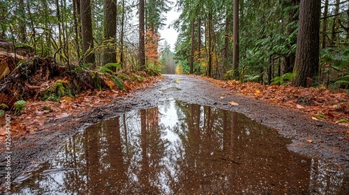 © Mukhamad, Obraz premium Autumn Forest Puddle Reflections