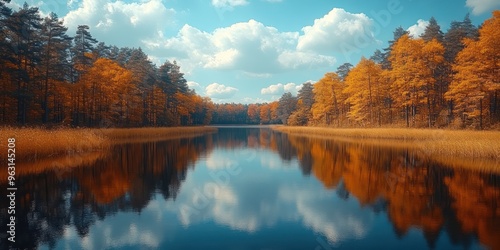Naklejka premium Autumn Forest Reflecting in a Calm Lake
