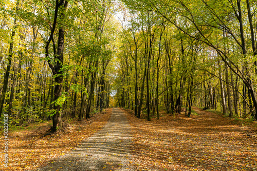 Fototapeta premium Autumn forest scene on a trail in Fruska Gora, Serbia