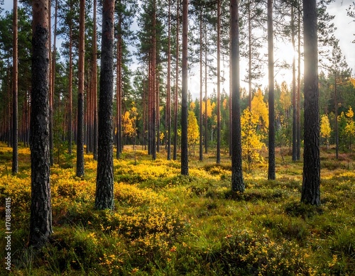 Fototapeta premium Autumn forest scene with golden foliage