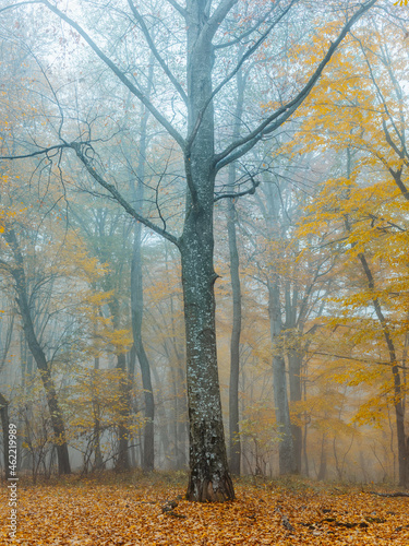 © SHOTPRIME STUDIO, Obraz premium Autumn forest trees yellow leaves fog nature