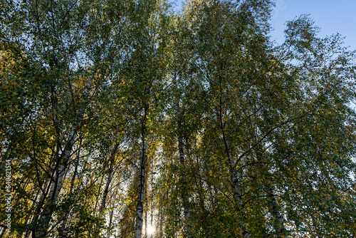 Obraz premium Autumn forest with a large number of birch trees