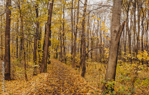© Jiri Dolezal, Obraz premium Autumn forest with falling leaves, Czech Republic