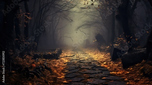 Obraz premium Autumn forest with fog and sunlight Beautiful nature background Fall season