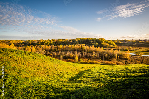 © Михаил Сидоров, Fototapeta premium autumn forest with green yellow and red trees