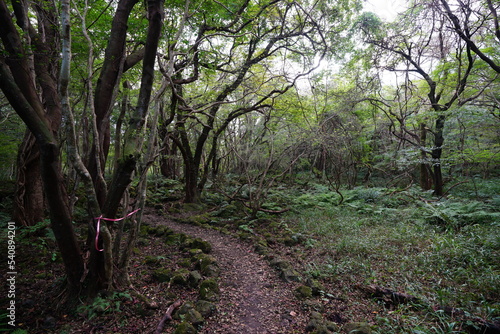 © SooHyun, Naklejka premium autumn forest with old trees and path