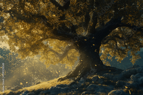 © Sergey, Obraz premium Autumn Forest with Sunlight