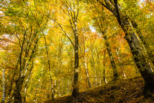 © salajean, Fototapeta premium Autumn forest with yellow leaves