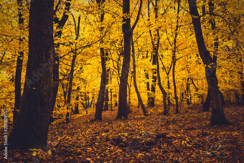 Fototapeta premium Autumn forest with yellow leaves
