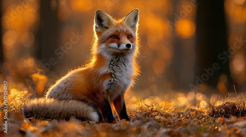 Naklejka premium Autumn Fox in Golden Forest Sunlight