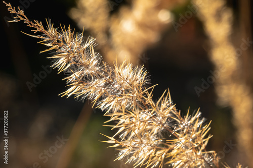 Fototapeta premium Autumn golden Grass In Sunset Light. backlight