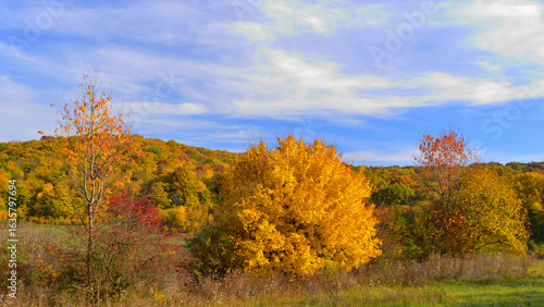© Shutterbug33, Fototapeta premium Autumn golds and ochres under a blue sky with altostratus clouds