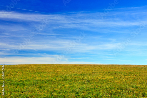 © Jurek Adamski, Obraz premium Autumn grass and blue sky with white clouds