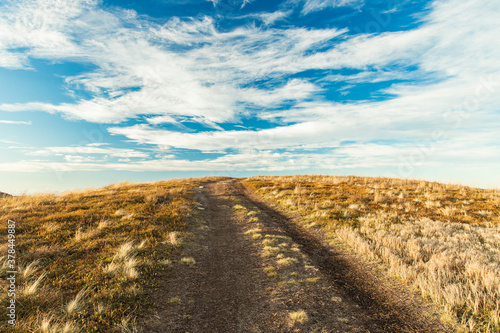Fototapeta premium autumn highland meadow simple rustic scenic view horizon background line...