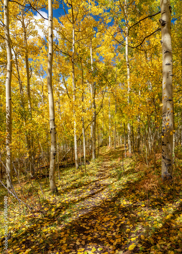 © Craig Zerbe, Obraz premium Autumn hike through the aspen trees at Silver Jack Reservoir - Ridgway Colorado