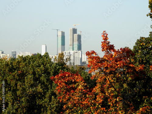 © Natalia, Obraz premium Autumn in a modern city and construction, selective focus