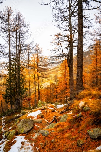 © Priyadarshi Ranjan, Fototapeta premium Autumn in forest, Alpine forest in Alps