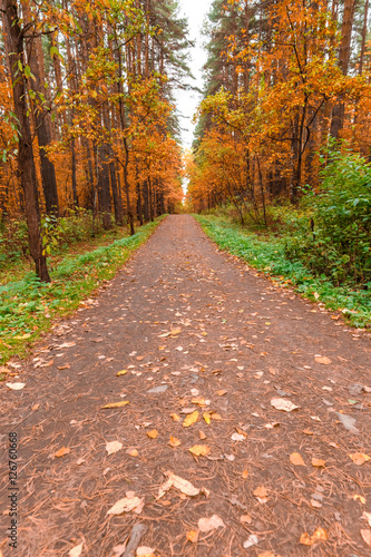 © Sergey Yarochkin, Fototapeta premium Autumn in pine and birch forest