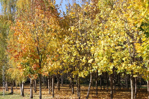 Naklejka premium Autumn in the city. Yellow foliage. Autumn forest. Leaves are falling.