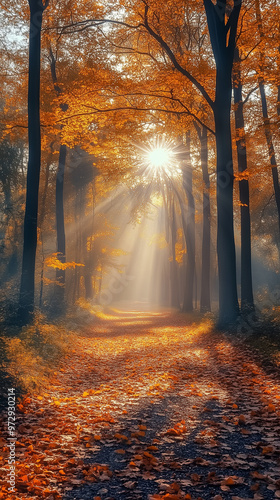 © Andrea Raffin, Fototapeta premium Autumn in the forest at dawn.