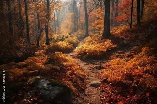 © dirgananda, Obraz premium autumn in the forest made with generative ai