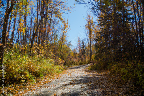 Naklejka premium autumn in the forest path in Alberta