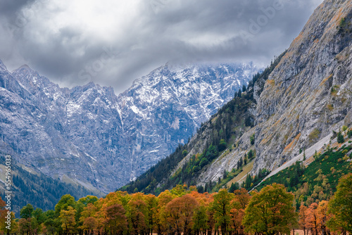Fototapeta premium autumn in the Karwendel Range (Ahornboden/Eng Valley, Tyrol, Austria)