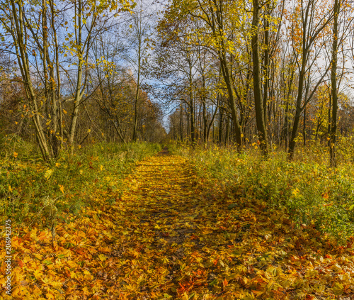 Obraz premium Autumn in the old forest Park. Nevsky forest Park is located in the Leningrad...