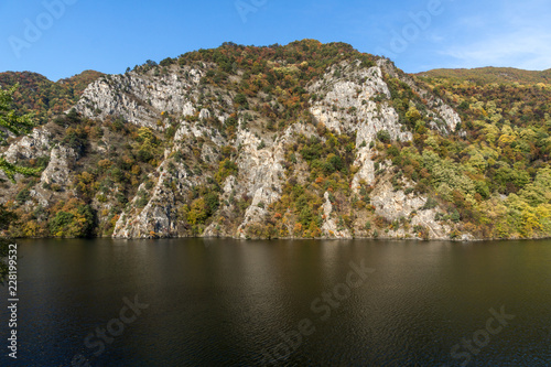 Fototapeta premium Autumn ladscape from dam of The Krichim Reservoir, Rhodopes Mountain, Plovdiv Region, Bulgaria