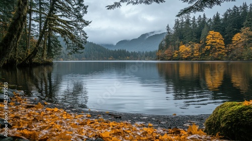 © A B I G A I L, Fototapeta premium Autumn lake scene with reflections