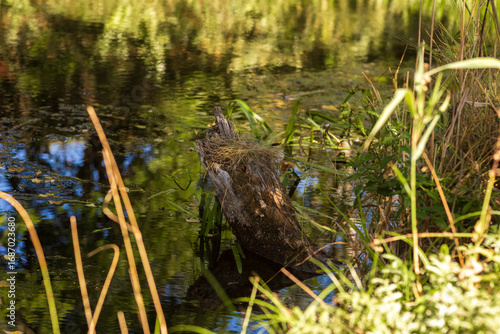 © zenith zones, Obraz premium Autumn Lake with Flowers and Wildlife