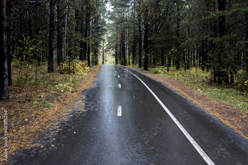 © Лозовая Людмила, Fototapeta premium Autumn landscape asphalt path going up in the park after the rain