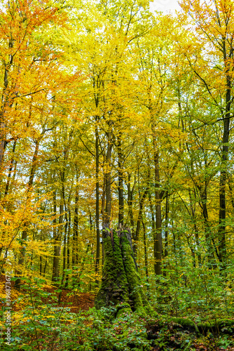 © Kozioł Kamila, Obraz premium Autumn landscape. Autumn colored leaves on trees in the forest.
