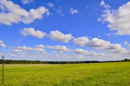 © Oksana, Obraz premium autumn landscape blue sky yellow trees