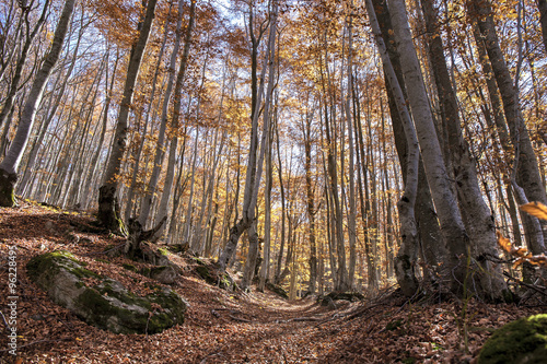 Fototapeta premium Autumn landscape in a beech trees forest.