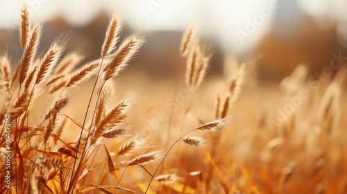 Fototapeta premium autumn landscape in beige with spikelets and a beautiful bokeh effect in the...