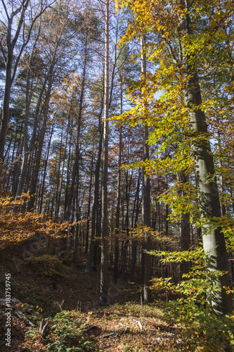 © Adriana Nikolova, Fototapeta premium Autumn landscape in Rodopi, Bulgaria. Colorful autumn forest.